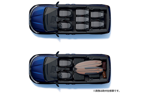 ルノー グランカングーの魅力は、趣味や暮らしの可能性を大きく広げる室内空間と、多彩なアレンジが可能で乗り降りしやすい3列シート。さらに、ルノー カングーのアイコンとなっている観音開きのダブルバックドアも、ルノー グランカングーの日本仕様には特別に採用されます。