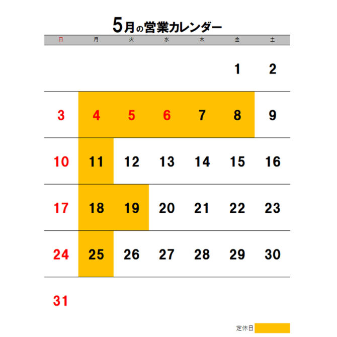 4月・5月の営業カレンダーについて