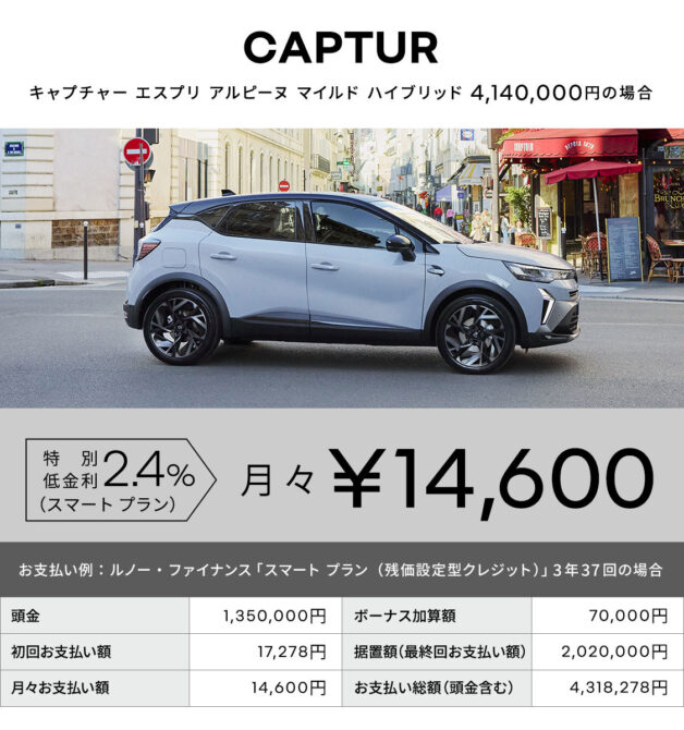 期間中の新車ご成約で2.4%特別低金利(スマートプラン)をご利用いただけます。お得にご購入いただけるこの機会をお見逃しなく!